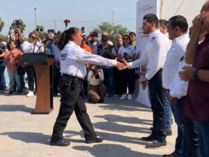Matamoros.- Esta mañana, el alcalde Alberto Granados encabezó la entrega de cámaras corporales a los elementos de tránsito de la