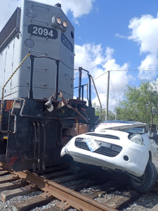 En un accidente registrado en la avenida Fidel Velázquez, un vehículo impactó con un tren de la empresa KCS de