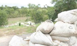 Al contar todavía con volúmenes de agua liberados de las presas tamaulipecas, fue construido un puente con costales para que