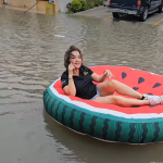 Emprendedora se toma con humor la inundación en la colonia San Francisco