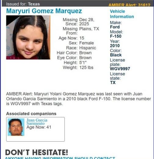 Alerta Amber en Texas: Buscan a Maryuri Gomez Marquez, menor de 15 años