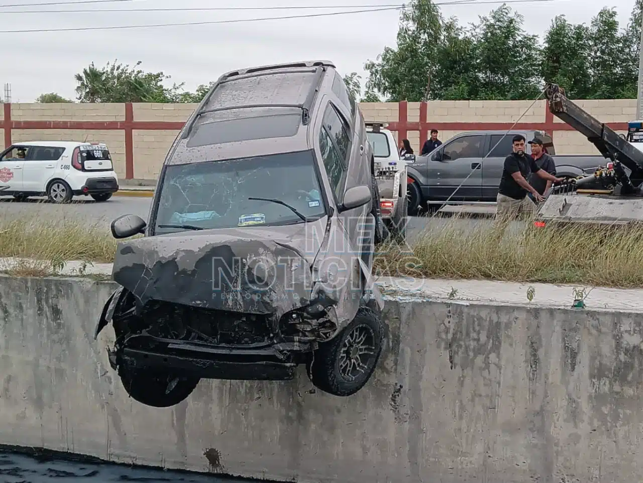 Matamoros, Tamaulipas.– Una camioneta terminó dentro de un canal de aguas negras la mañana de este jueves, luego de que su conductor perdiera el control al circular a exceso de velocidad sobre el libramiento Emilio Portes Gil, también conocido como Avenida del Niño, a la altura del CBTis 135 en esta ciudad.