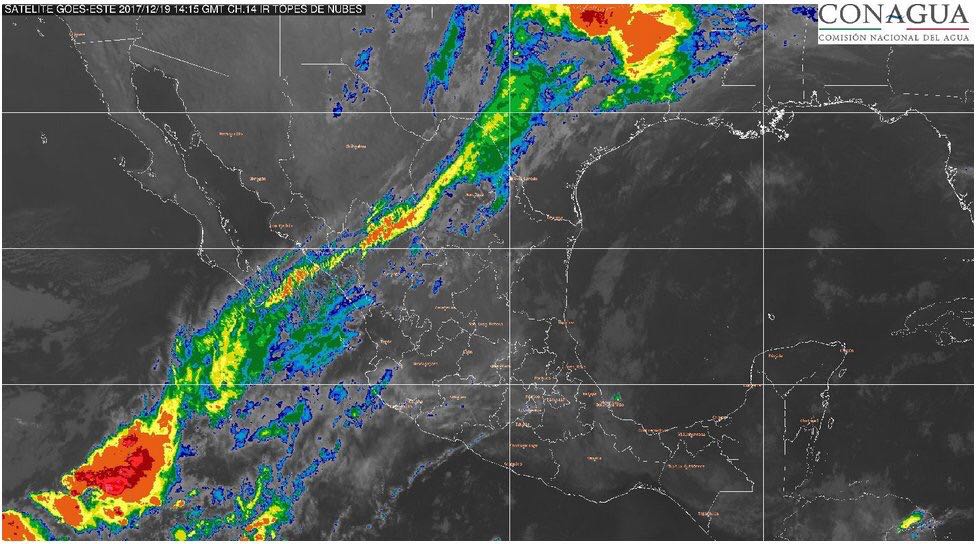 También se esperan lluvias con intervalos de chubascos en Coahuila, Nuevo León, Tamaulipas, Veracruz, Oaxaca, Chiapas y Tabasco, y lluvias dispersas en Chihuahua, San Luis Potosí, Querétaro, Hidalgo, Puebla, Campeche, Yucatán y Quintana Roo.